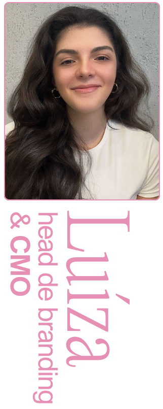 A trajetória de Luíza começou em um ambiente digital que moldou muitas marcas brasileiras: o Orkut. Com apenas 12 anos, ela já explorava o Photoshop para personalizar seus perfis e rapidamente se apaixonou pela criação visual. Criativa por essência, passou a editar imagens, criar gifs, memes e outras expressões visuais, sempre com o desejo de compartilhar sua estética única com o mundo. Quando o Orkut se tornou obsoleto, ela levou seu hobby para o Tumblr, onde sua criatividade se manteve sem restrições.